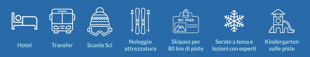 - inclusione nei pacchetti vacanza di skipass per comprensorio (80 km di piste nel carosello sciistico più grande al mondo)